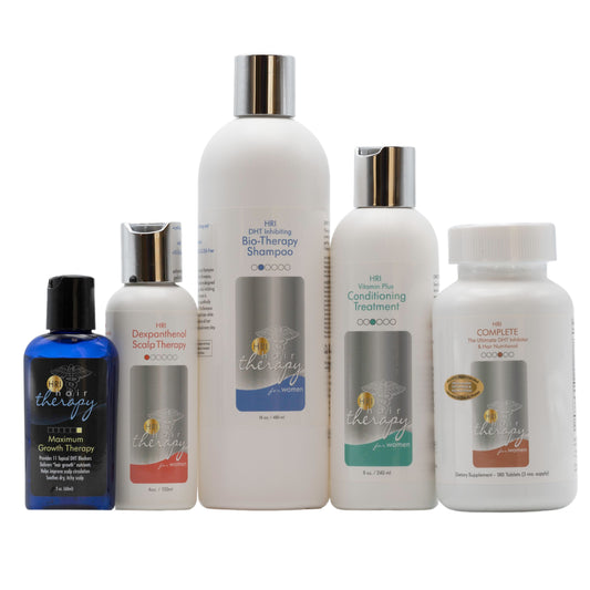Physician-formulated products designed by Hair Restoration Institute to nourish hair, block DHT, and stop hair loss.