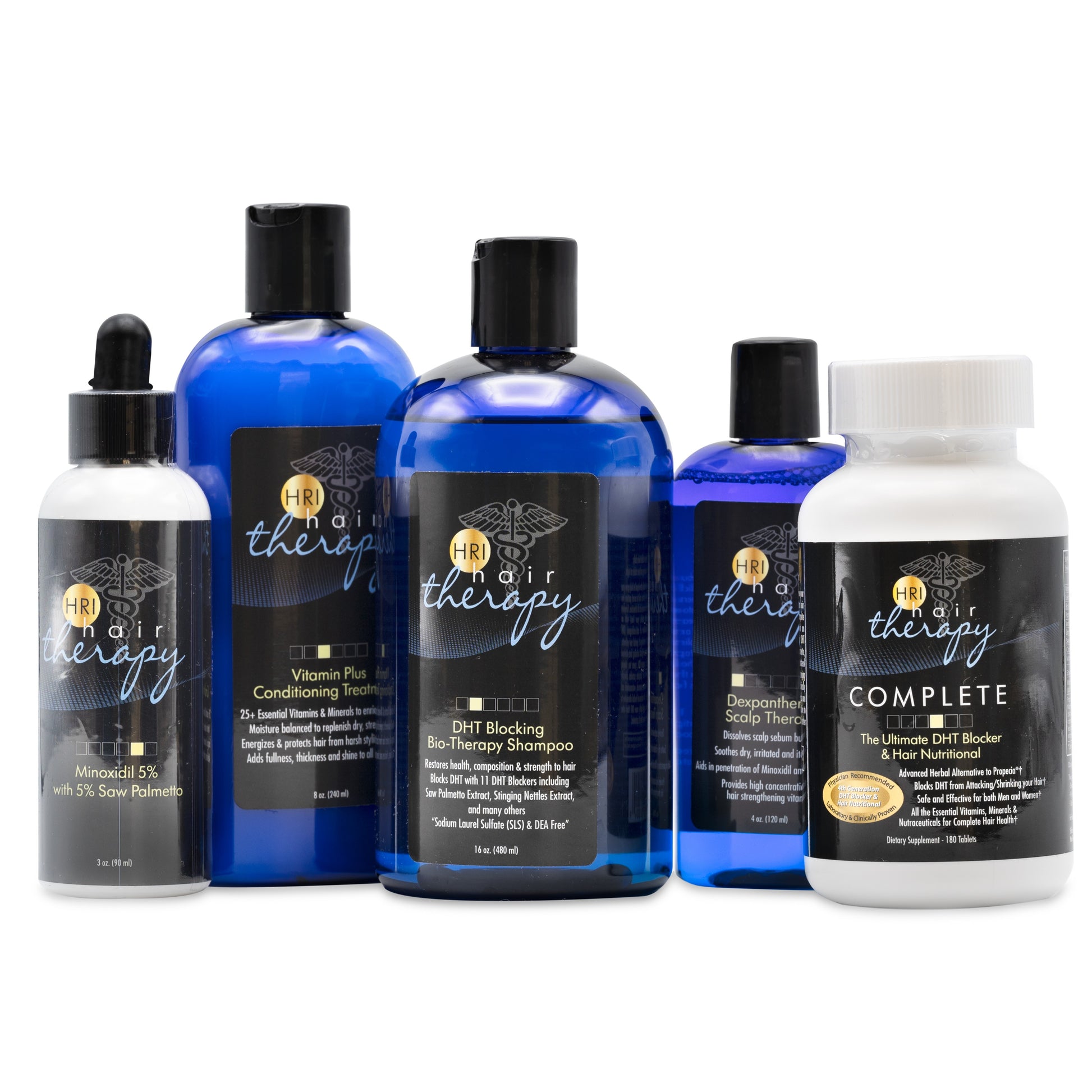 Hair Restoration Institute includes everything you need to control hair loss in 90 days in this kit. Our array of high end product contains the most effective formulas to combat thinning and aging hair. With every item in our proprietary and physician-formulated line of HRI Hair Therapy products, this pack includes: